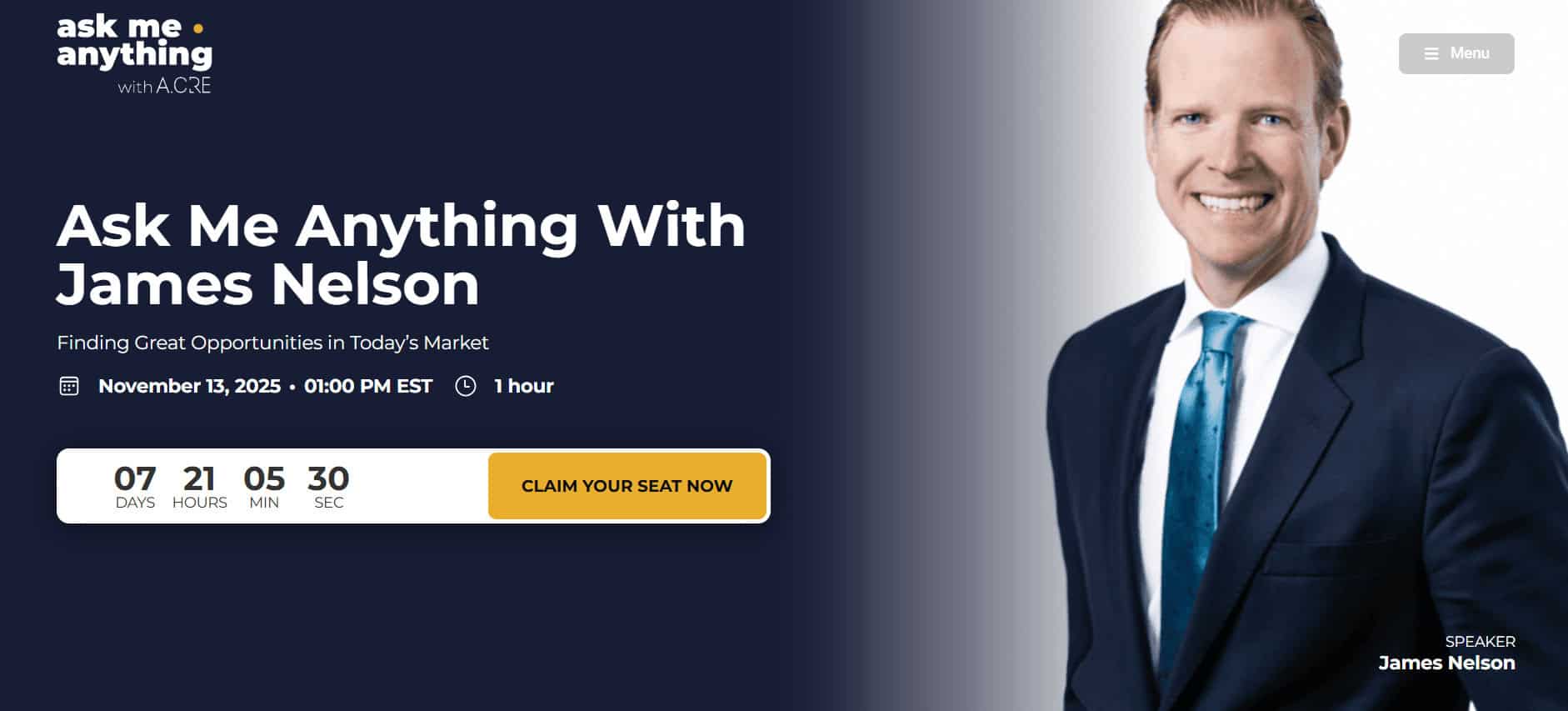 We are thrilled to announce our next A.CRE Ask-Me-Anything (AMA) session featuring James Nelson, a nationally recognized real estate investor, educator, and Principal at Avison Young, where he leads the firm’s U.S. Investment Sales practice in New York City.