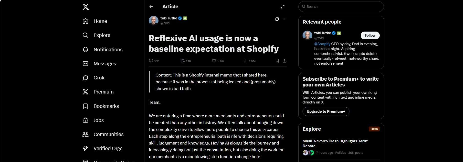 A few days ago, I came across this internal memo from Shopify’s CEO, Tobi Lütke, which he decided to publicly share because it was already in the process of being leaked. The memo was honest, direct, and (to me) deeply resonant.