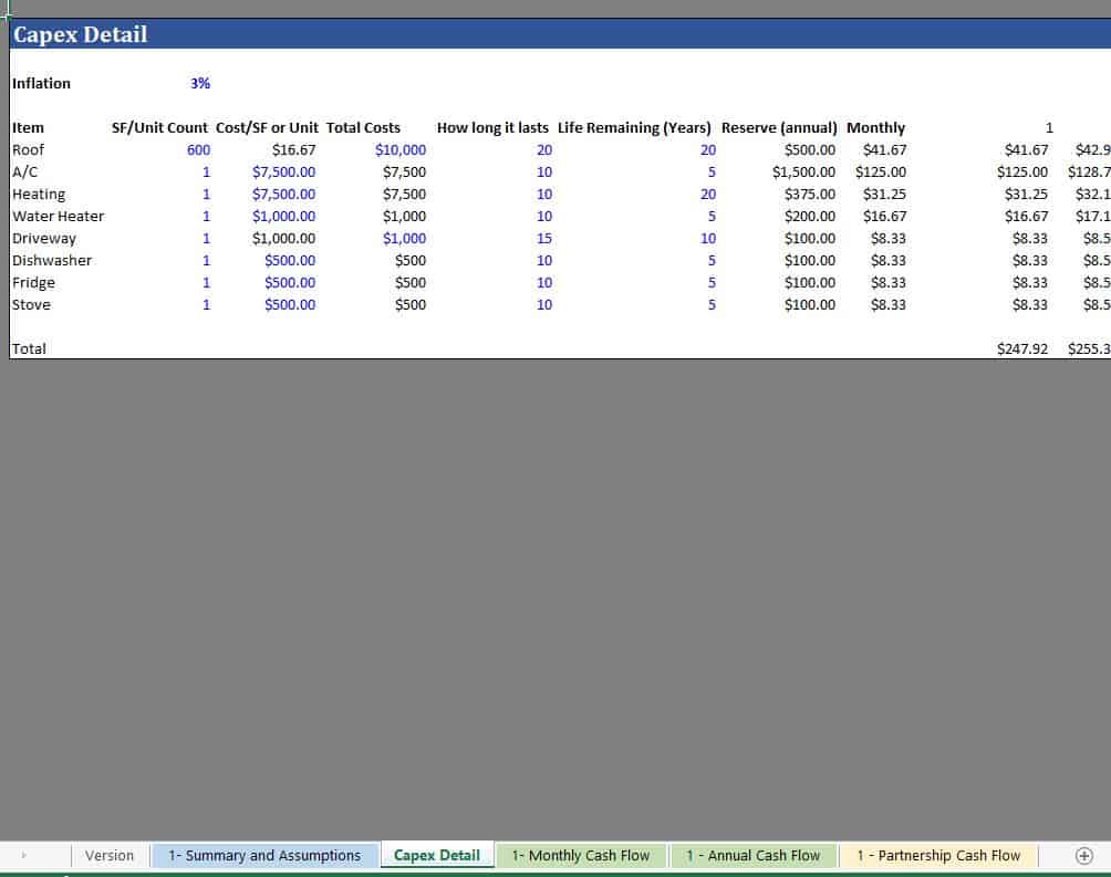 A model for analyzing single family rental investments with a simple and intuitive design. Includes an easy to use and extensive assumptions section side-by-side with a summary of cash flows and returns, a detailed capital reserve tab, basic sensitivity analysis, permanent debt module with an ability to refinance mid-hold period, a waterfall module, and more.