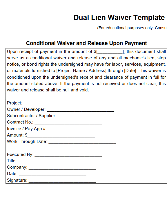 Dual Lien Waiver Template
