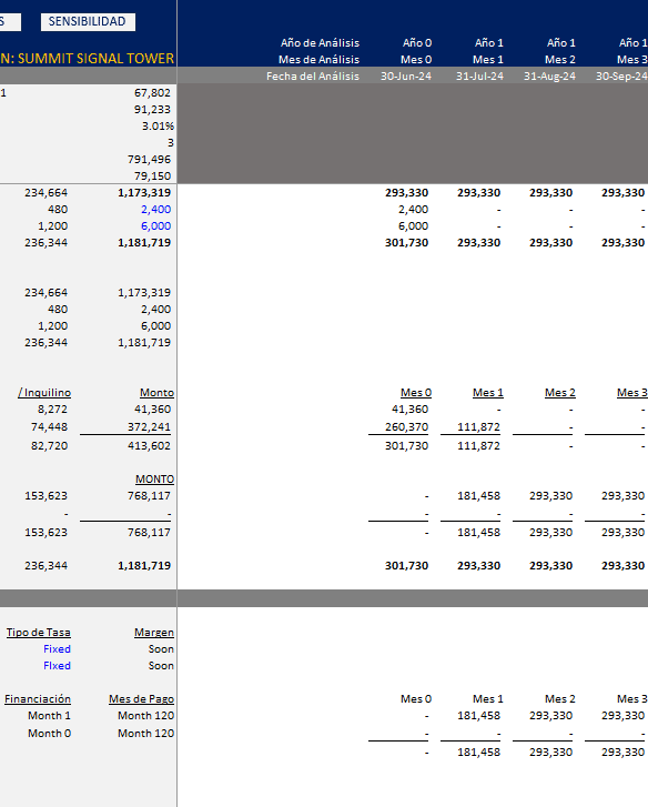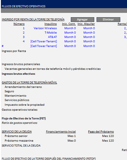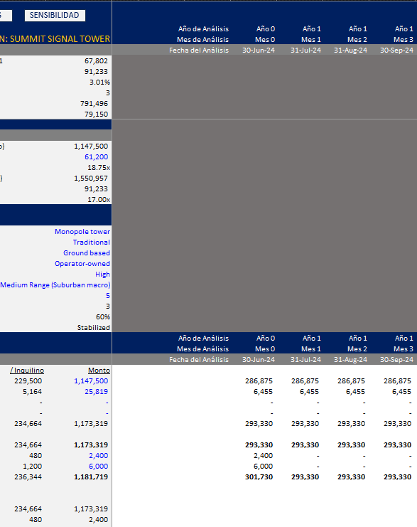 Una herramienta completamente dinámica, desarrollada en Excel, diseñada para suscribir, evaluar y monitorear oportunidades de adquisición de torres de telecomunicaciones con precisión de nivel institucional. Este modelo ofrece un marco transparente para proyectar flujos de caja a nivel de torre, estructurar la pila de capital y analizar los rendimientos bajo una amplia gama de escenarios de inversión.