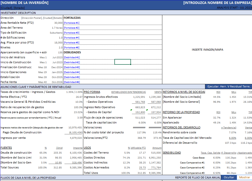 Un modelo práctico y dinámico que te permite analizar la viabilidad financiera de un proyecto de desarrollo de oficinas. (Vea la descripción del modelo)